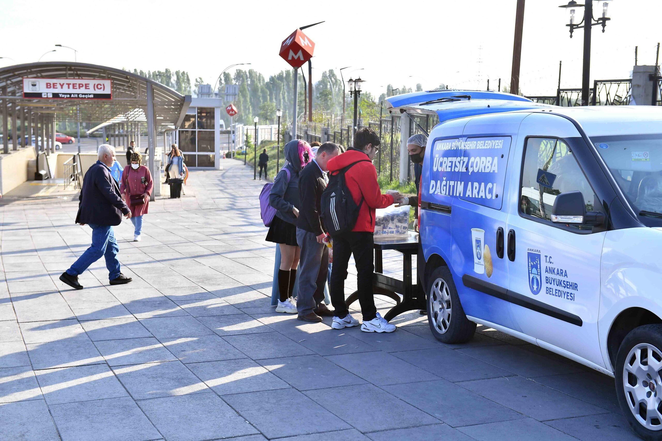 Ankara Büyükşehir Belediyesi’nin sosyal belediyecilik anlayışı kapsamında, Anket A.Ş. tarafından yürütülen Çorba Dağıtım Hizmeti ile sabahın erken saatlerinde okuluna ya da işine yetişmeye çalışan, kahvaltı yapma imkânı bulamayan 7’den 70’e tüm vatandaşlarımıza sağlıklı, güvenilir ve hijyenik çorbalar ücretsiz olarak ikram edilmektedir. Başkentlilerin güne zinde başlaması için hafta içi her gün 07:00’de başlayan ikramlarımız, mobil ekiplerimiz ve ikram noktalarımızla hızlı, düzenli ve erişilebilir şekilde sürdürülmektedir.