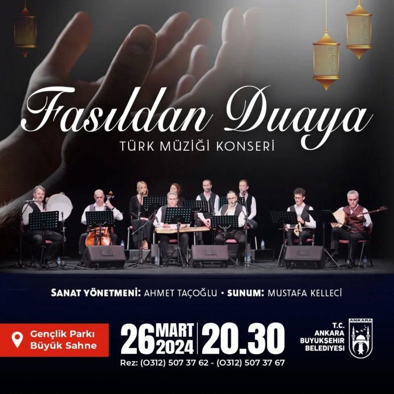 Tamamlandı Fasıldan Duaya Türk Müziği Konseri 📅 26/03/2024 ⏰ 20:30 – 20:30 📍 Gençlik Parkı Büyük Sahne KonserÜcretsiz