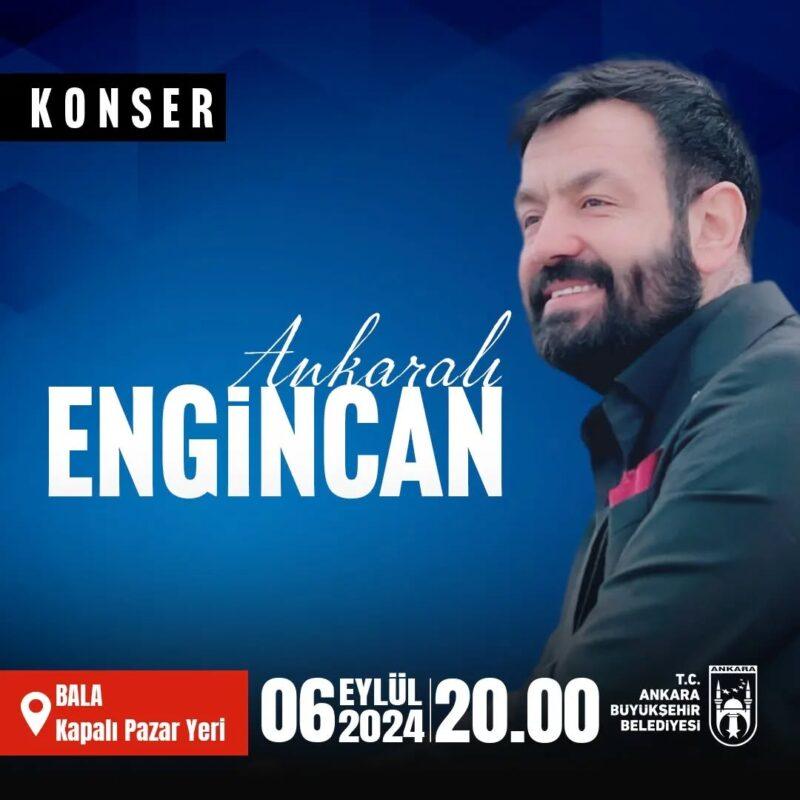 Tamamlandı Ankaralı Engincan Konseri 📅 06/09/2024 ⏰ 20:00 – 20:00 📍 BALA Kapalı Pazar Yeri KonserÜcretsiz
