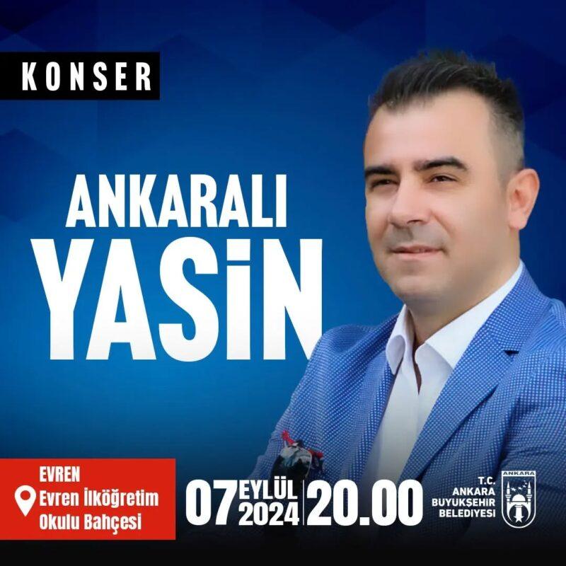 Tamamlandı Ankaralı Yasin Konseri 📅 07/09/2024 ⏰ 20:00 – 22:00 📍 EVREN İlköğretim Okulu Bahçesi KonserÜcretsiz
